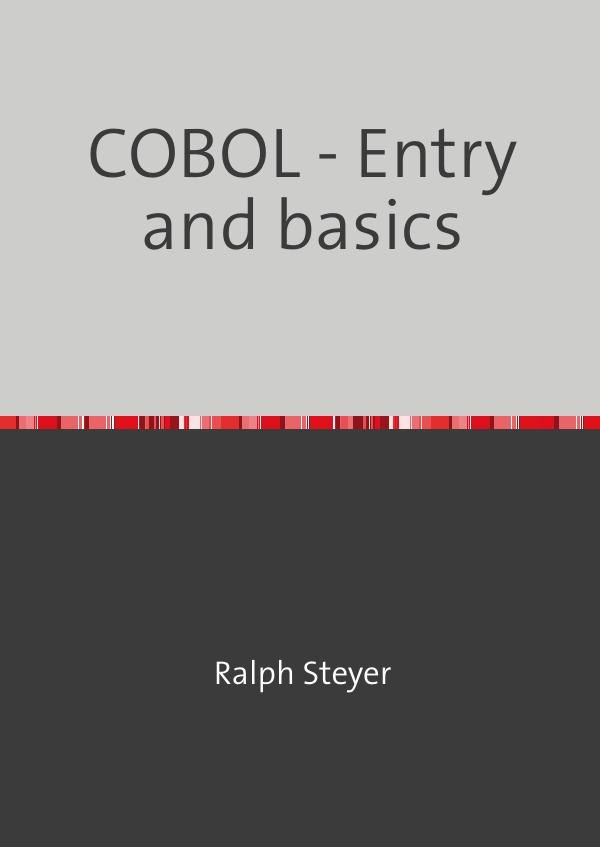 COBOL – Entry and basicsGetting started with COBOLCOBOL has long been said to be dead. However, there are still tens of millions of COBOL code lines. Especially in banks and insurance companies COBOL programs are still used and it is not foreseeable that these programs will be changed. This book is intended for learning COBOL in the form of self-study or as accompanying material in COBOL courses. It teaches the elementary basics of creating and maintaining programs with COBOL. Emphasis is placed on the basic application of the various techniques and simple examples, and not on completeness of all possible statements, commands or parameters. In particular, no dialect or distribution specific features are considered. This book is designed as a beginner’s course, working through the basics of the COBOL language from the ground up. However, COBOL is rarely learned as a first programming language, and elementary, basic programming experience is assumed. COBOL has its main application on mainframes / mainframes. However, one can also work very well with a normal PC. Therefore, only a PC is explicitly assumed as a basis for the book. However, the explanations of the actual program codes are independent of the platform.